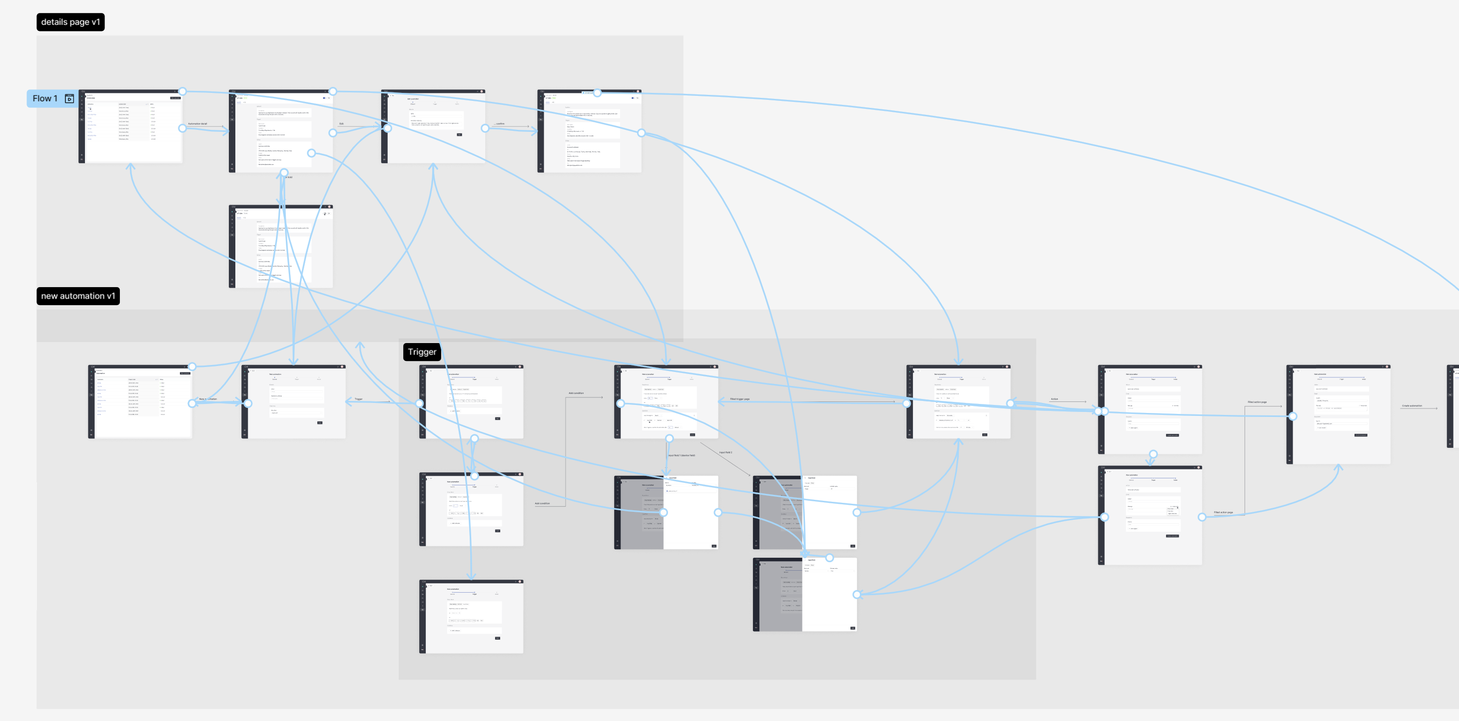 An interactive prototype map from Figma, showing the user flows for advanced module configuration.