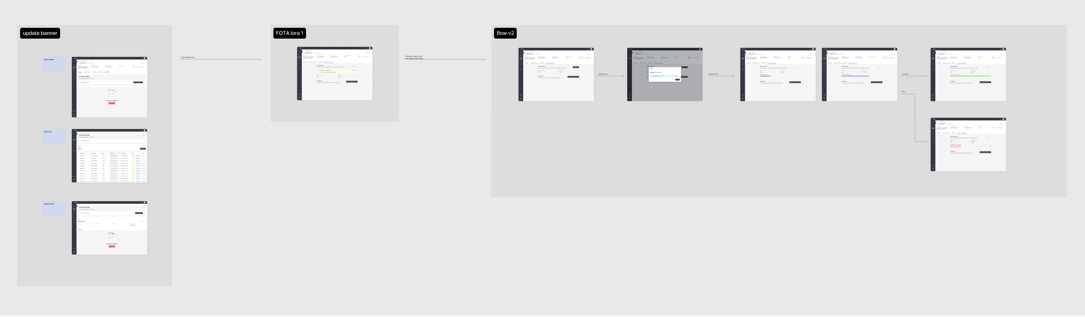 A user flow diagram from Figma illustrating the automated Firmware-Over-the-Air (FOTA) update process. This flow was designed to minimize user interaction and provide clear status feedback and error handling.